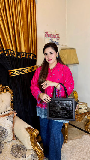 Elevate your style with the Designer Hand Bag HM-05, crafted to complement every outfit effortlessly. Its sleek black finish offers timeless elegance, making it a versatile accessory for both casual and formal occasions. Designed with meticulous attention to detail, this bag combines functionality and fashion, ensuring ample space for essentials while maintaining a chic silhouette. Perfect for those who appreciate sophisticated design that adapts seamlessly to any look.